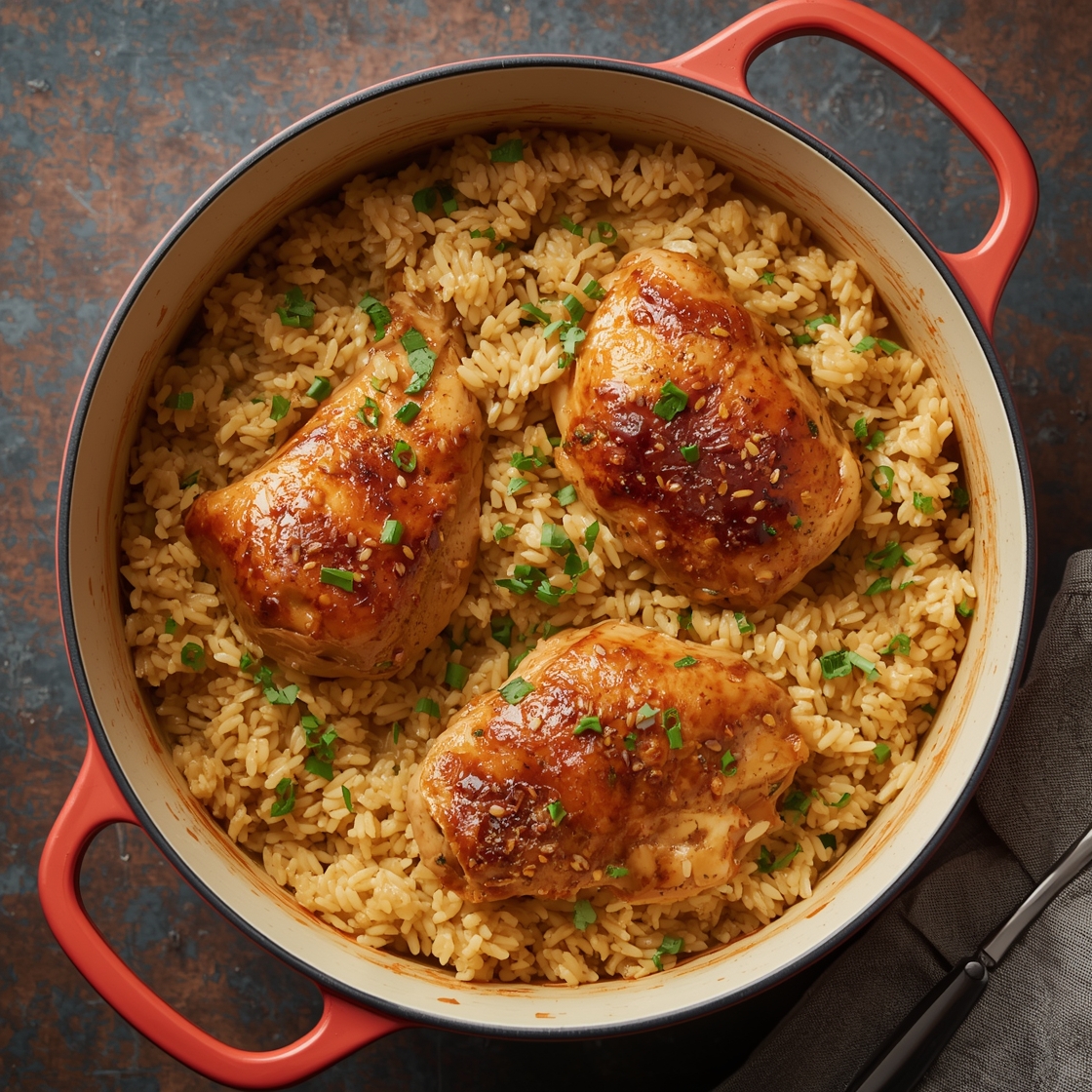 A comforting and easy recipe for Oven-Baked Chicken & Rice, perfect for a family meal. Tender chicken and flavorful rice baked together in one pan.